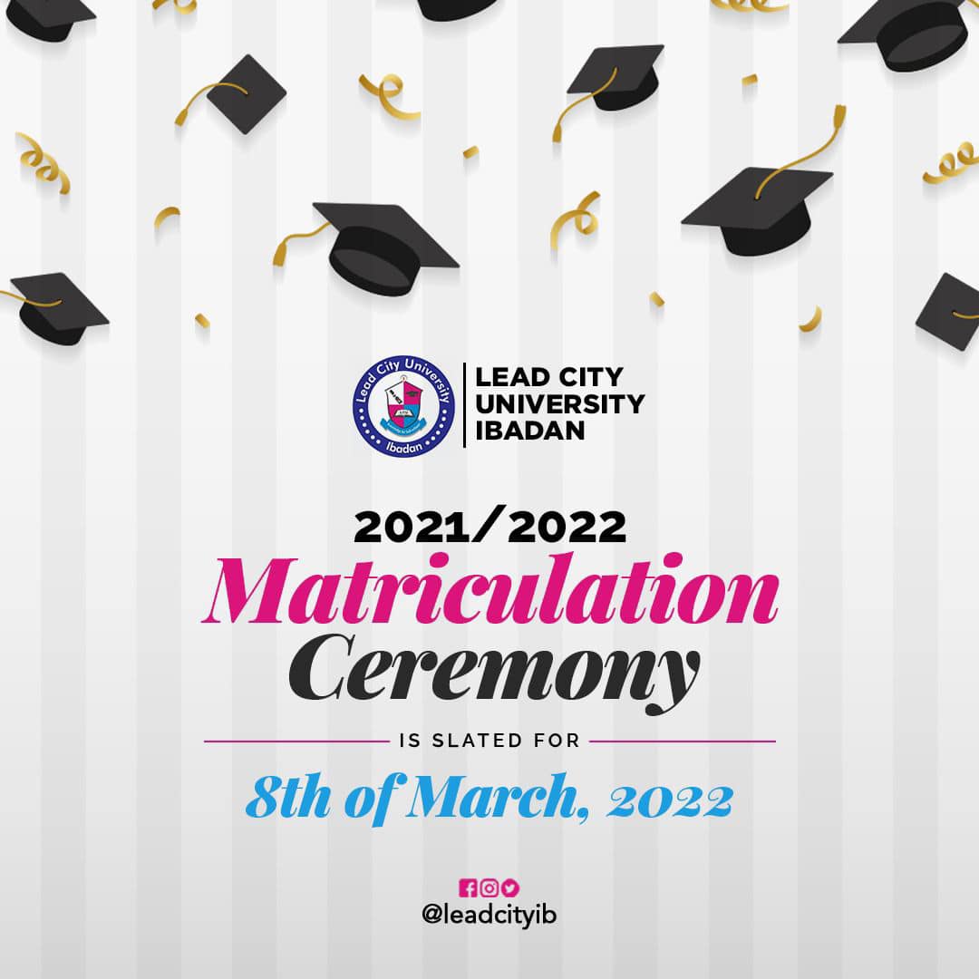 Lead City University matriculation ceremony which is meant to officially usher in the 2020/2021 academic session newly admitted students has been scheduled to hold Tuesday, March 7, 2022.